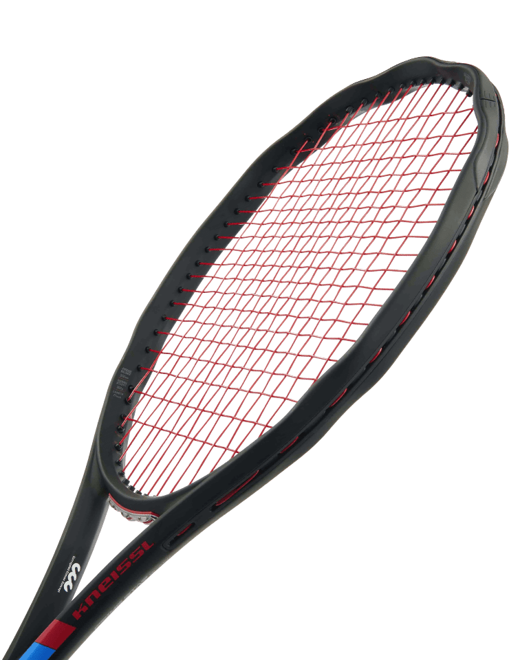 3-9時部分を通常のラウンド形状にすることで、しなりやすくなり、インパクトの際にラケット全体で包み込むような感覚を生み出す。
