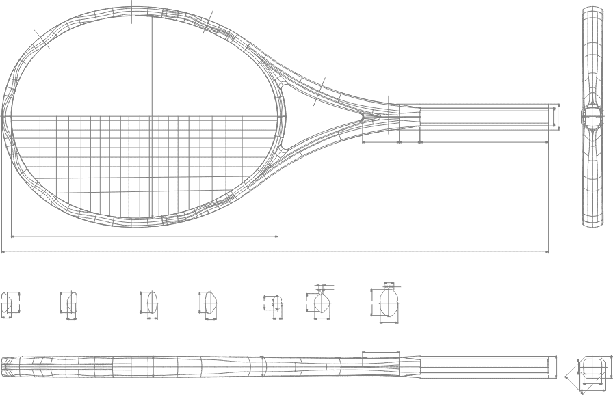 ラケットのフレームの11-1時‒4-8時部分を波型の凸面形状に設計。